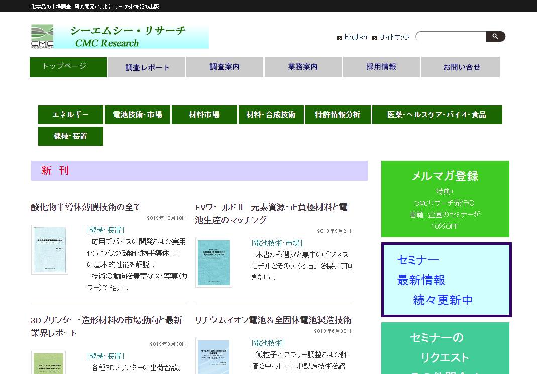 チウムイオン電池を中心に株式会社シーエムシー・リサーチ(以下「CMCリサーチ」)は、2019年11月21日、セミナー『蓄電池の資源循環技術と国内外の法規制 ~ リチウムイオン電池を中心に ~』を、東京・神田錦町にて開催する。 同社は、セミナー開催や書籍発行を…