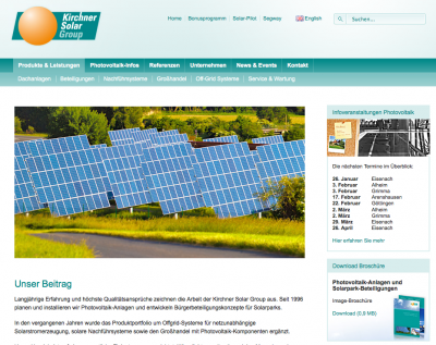 拠点の設置ドイツ、ヘッセン市にあるキルヒナーソーラーグループ社はさらに世界規模の枠組みへと拡大しようと、ギリシャ、アテネ市に子会社となるキルヒナー・ヘラス社を設立した。 この子会社の設立によってギリシャの太陽光電力の市場の発展させ、体制を整える…